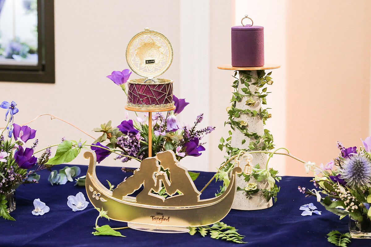 以治癒萬物的金髮魔力化為婚戒設計靈感,編織髮辮的精緻打磨刻紋貫穿整個婚嫁系列套戒,加上閃耀金色光芒同時也象徵了故事中無悔擁抱生命中希望、相愛兩人互相引領找到彼此幸福道路的寓意;另外男生婚戒以鉑金呈現的巧思更是動人—費林為樂佩剪去長髮邁向新生活,完美將浪漫感人寓意融入婚嫁系列中。