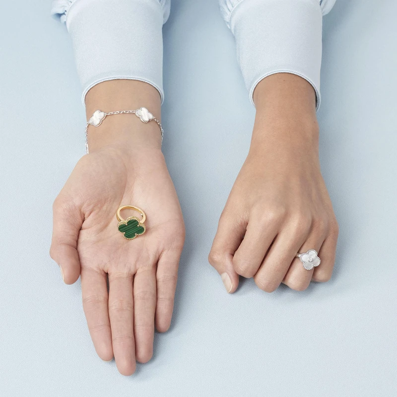 有人說孔雀石是旅人和孩童的守護石,也有聚財、讓人際溝通更為和諧的說法,梵克雅寶Van Cleef & Arpels的孔雀石擁有筆直、單一的紋理,其獨特深淺交織的綠色紋路,傳遞著沉穩、高貴的氣質,讓人感受到大自然無窮的活力。