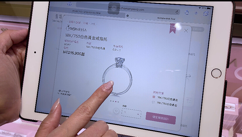 點睛品PROMESSA訂製系列連鑽石戒指都提供客製化服務,從鑽石大小、戒環款式選起,使用點睛品店內3D智能模擬服務,要讓所有女孩透過最輕鬆、有效率的方式選中專屬自己浪漫愛情的婚戒!