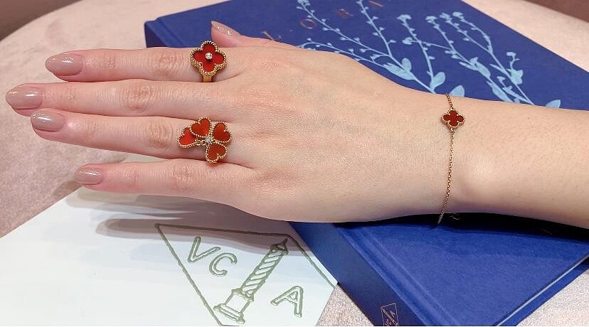 ↑ Vintage Alhambra戒指和幸運草五枚手鍊、Sweet Alhambra單枚幸運草手鍊