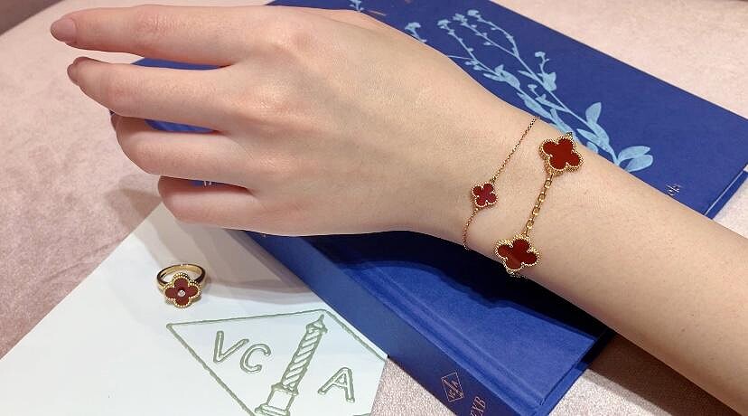 Van Cleef & Arpels - Sweet Alhambra手鍊 (玫瑰金, 紅玉髓) 建議售價: 約新台幣43,000元