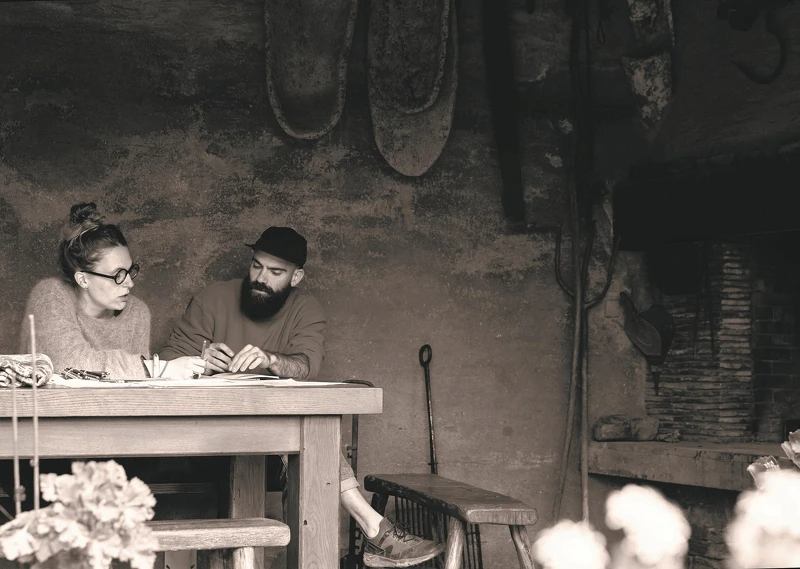 畢業於法國國立高等工業設計學院(ENSCI-Les Ateliers),身兼紡織品設計師及絲網印刷藝術家的Céline Thibault,寫作被她視為孕育任何創作最不可或缺的一環,日常生活在她眼裡滿載的都是欣悅詩意,創作靈感來自她嫻熟的工藝技術;成長建築世家的Pellottiero,畢業於布勒高等應用藝術學院,勇於接受技術挑戰是他個人的鮮明風格態度,作品往往有著別出心裁的獨特創新眼界。