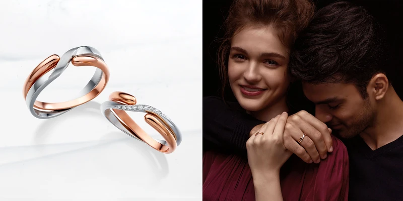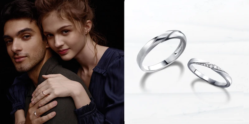 讓愛情最美好的模樣以「愛的印記」記錄下彼此的永恆承諾。雙色雙金的精湛工藝完美無痕接合白K金與玫瑰K金的對戒,極簡線條設計中添加了平面與立體視覺相輝映的層次空間感,一筆成型的雙色線條彷彿是兩人一路走來的愛情軌跡;女戒以鑲嵌點點美鑽刻劃出動人璀璨記念,呈現出將過去、現在與未來全都緊密連結的永恆見證。