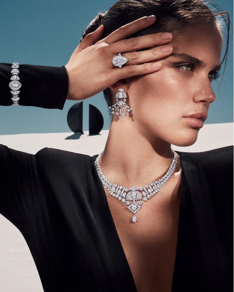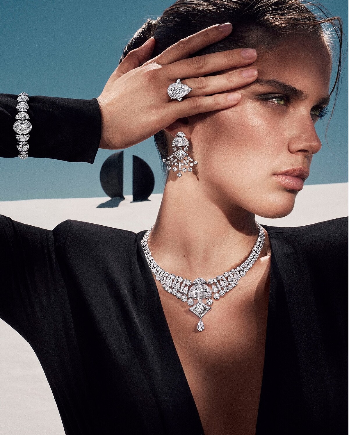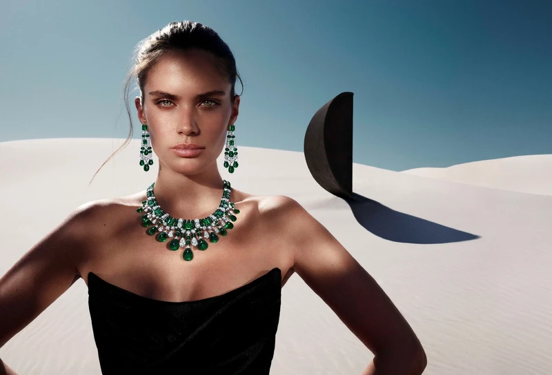 展覽中備受矚目的傑作之一,便是在全新廣告中磅礡登場,分別鑲嵌418克拉祖母綠與76克拉鑽石的高級珠寶項鏈,純粹大器的懾人力量,著實令人驚艷移不開目光。