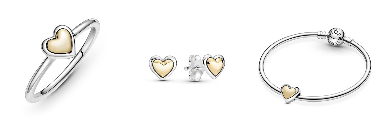 Pandora金石心印雙色戒指 NT$2,880,Pandora金石心印雙色耳環 NT3,280,Pandora金石心印雙色串飾 NT3,680