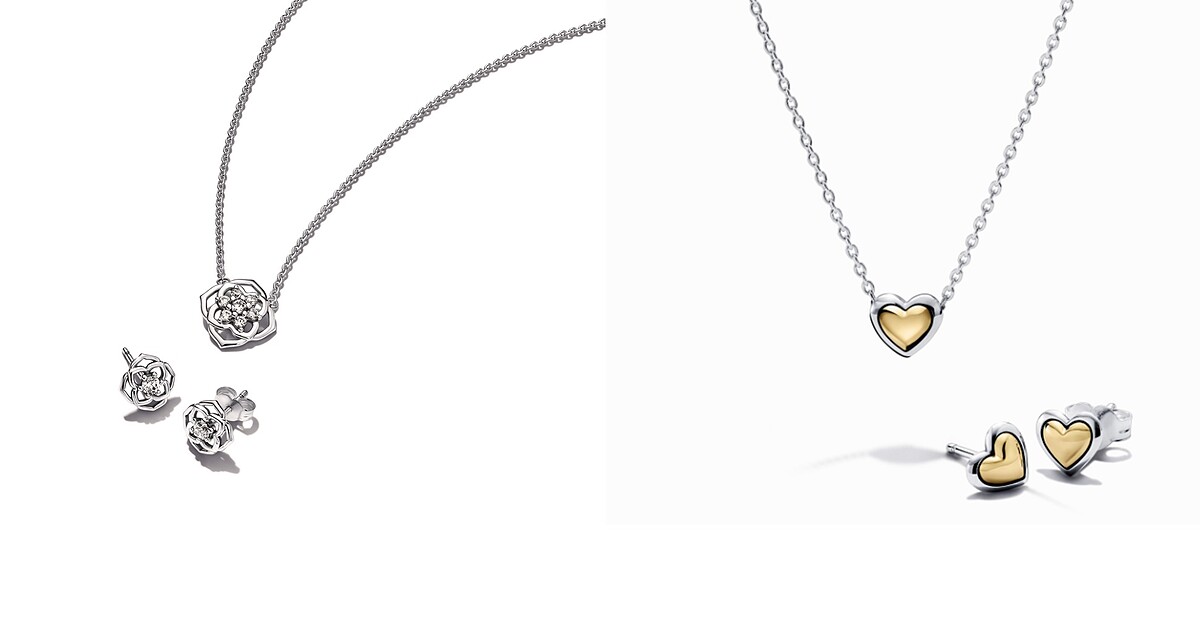 璀璨玫瑰項鏈耳環套組 NT3,980、金石心印項鏈耳環套組 NT5,980