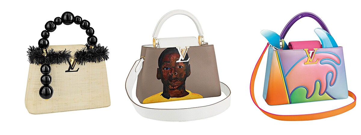自問世以來,Capucines 屢屢在皮革、色彩、細節、尺寸上創新,給足時尚迷驚喜,好比為簡單的包身輪廓畫龍點睛的串珠、紋繡、裝飾花卉、皮製花瓣等工藝,或者彩色透明手把、珍稀蛇皮材質、肩揹或斜揹用加長肩帶等巧思,讓每一款設計各有風采與個性。其中最特別的莫過於 Arty Capucines 系列,秉持品牌一直以來對於藝術的追求和多元的創作精神,Louis Vuitton 分別在2019及2020找來各領域的頂尖藝術家以 Capucines 為題、自由創作,透過不同的媒材與創作形式,將藝術家們獨特的視角融入 Capucines 之中,展現藝術與時尚、街頭與高端、新時代創意與傳統工藝的多元組合。