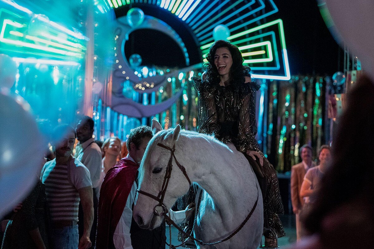 最常出現在報章雜誌上的是她夜夜笙歌的報導,讓 Halston 流連忘返的紐約傳奇夜店—Studio54,也是 Bianca Jagger 最愛夜店,兩人在 Studio54 相識、相熟,和 Liza Minnelli 、Andy Warhol 可說是當時 Studio54 名氣最響亮的鐵四角,四人形影不離、徹夜狂歡,留下不少精彩的照片。有趣的是全劇雖然沒有 Bianca Jagger 這角色,但有兩個畫面明眼人一看就知道是她,一是 Halston 第一次到訪 Studio54 時與她擦身而過,Mick Jagger 甚至跟 Halston 點了點頭,再來是某次派對有個女子騎著白馬走進舞池,那是 Bianca Jagger 三十歲的慶生趴,也是發生於 Studio54 中最著名的一場派對。