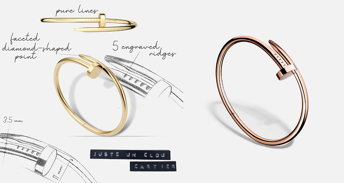 LOVE 系列超過50年的傳奇開始於一只手環,鬼才設計師 Aldo Cipullo 以俐落的線條搭配一字螺帽設計,別緻、有個性,配戴者必須透過專用的螺絲刀並合兩人之力才能拴緊與拆卸的大膽概念,也顛覆了當時的珠寶美學、造成轟動,後來更成為愛情的象徵與戀人間的信物,從此成為卡地亞最經典的作品。