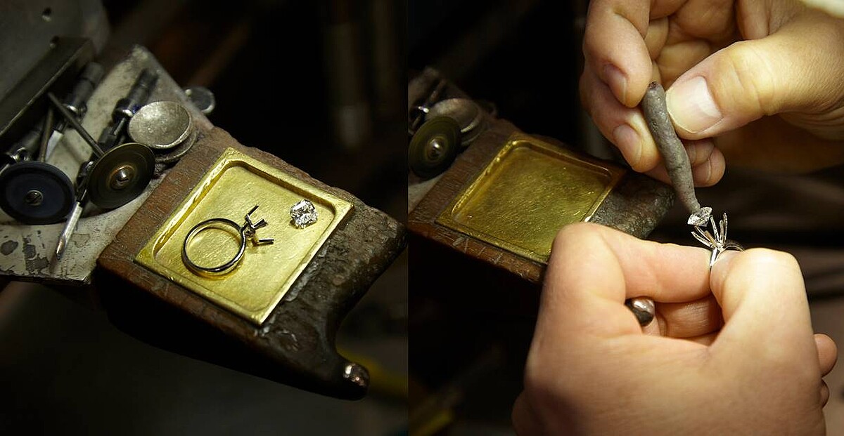 要進入鑲嵌步驟之前,Tiffany的鑽石會交由紐約工作坊進行評級監督及品質驗證,寶石專家仔細檢查每顆鑽石,確保其達到品牌對於切工、淨度、克拉及顏色的高標準,任何造成寶石美感消失的因素都不被接受,待檢測完成,大部分的Tiffany鑽石會在美國工作坊鑲嵌,工匠以手工調整各訂情戒指的戒台,呈現每顆鑽石最美的樣態,同時,品牌能提供由其鑲嵌、0.18克拉或以上獨立註冊鑽石的原產地,與我們分享Tiffany鑽石的工藝之旅。