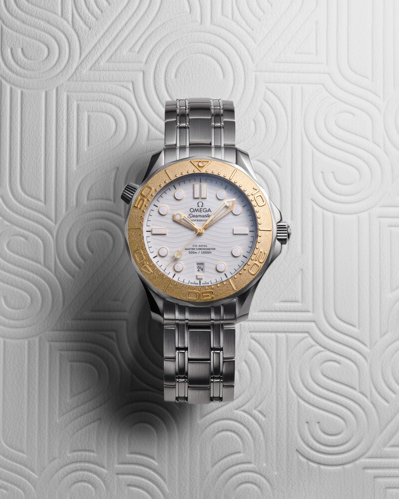 目前僅在主辦城市巴黎的歐米茄名品店販售,OMEGA 海馬潛水300米「2024巴黎奧運會」特別版錶徑42毫米,由精鋼與品牌獨有的18K Moonshine™金打造,外觀呈色比起ㄧ般K金更為柔和且耐用,同時呼應源自「奧運金牌」的設計主題。錶圈搭載鐳射成形的浮雕潛水刻度、12點鐘方向設置一顆Super-LumiNova超螢光塗層圓點。白色陶瓷錶盤先以霧面處理,再飾以拋光浮雕波浪圖案,而中央秒針有2024巴黎奧運標誌。不外顯的底蓋也有許多巧思-18K Moonshine™金打造的火炬徽章、「Paris 2024」字樣和奧運五環等元素。錶鍊具備歐米茄全新專利快速更換系統,可另外與2024巴黎奧運專屬NATO錶帶替換。