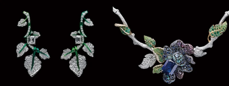 貴族出身背景的Victoire,總以全面性美學視角打造獨樹一幟的設計風格,跳脫本該由珍稀寶石為主角的傳統框架,帶領大家馳騁在無邊際的異想世界。這次她為 2021 年全新 DIOR ROSE 高級珠寶系列建構了一個「Dior 星球」,在此超現實行星裡,眷養了「浪漫玫瑰」、「彩繪玻璃玫瑰」、「未來派玫瑰」,以及「抽象時裝玫瑰」。「浪漫玫瑰」分別以藍色緬甸藍寶石與粉紅藍寶石做為主視覺焦點,前者所獨具的絲絨藍色澤,在紫水晶、帕拉伊巴等級碧璽、沙佛萊石、祖母綠、紫鈣鐵榴石的映襯之下,暈染出一片藍中帶紫的夢幻氛圍。而後者則在鑽石萼片的簇擁環抱之間,粉紅色光暈因為鑽石火光達到了最大總量值而倍顯璀璨。「彩繪玻璃玫瑰」則由哥倫比亞祖母綠領軍,將漸層色調一同和聲鳴唱出和諧舞曲。而長方形與玫瑰式切割鑽石更尤為巧妙,讓整片鬱綠增添了一席透澤光感。「未來派玫瑰」中無論是尚比亞祖母綠、蛋白石,甚或金色南洋珠其中以何者為要角,皆因彩漆鑲爪、離心鑲嵌位置等大膽前衛細節,讓每一朵寶石玫瑰花完美綻放。而「抽象時裝玫瑰」則實為品牌時裝背景的奢華展演,不對稱的風箏型切割鑽石,形似歐洲皇室貴族的古典套件,皆是透過傳統珠寶工藝技術向當代美學致意。