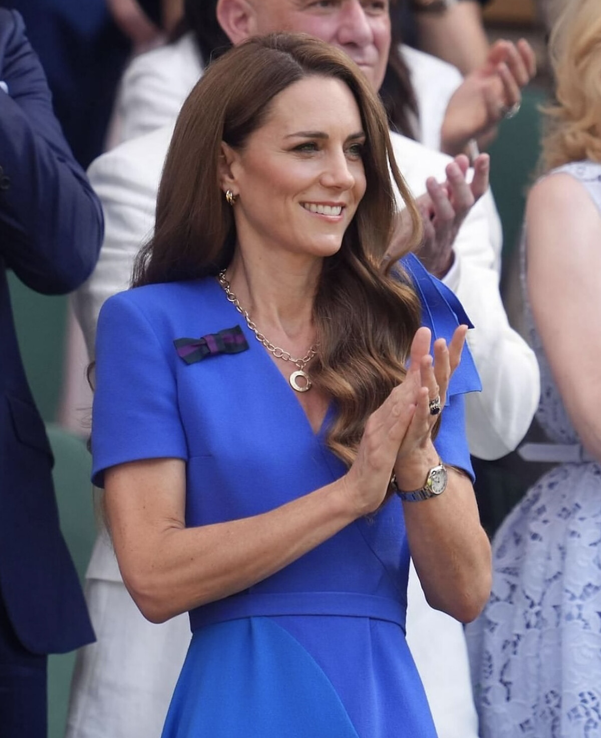 在近期公開亮相的溫布敦網球公開賽與肯辛頓宮皇家幼兒基金會中心的啟動儀式(The Royal Foundation Centre for Early Childhood at Kensington Palace),凱特各自穿上深藍色圓點西裝外套,及剪裁俐落的粉藍色小洋裝。不只官方活動,對她來說的重要人生階段,她也經常選擇深淺不一的藍色:2010年官方訂婚照片的寶藍色洋裝,2013年喬治王子出生後她穿上藍色白點洋裝在醫院前留下照片,2020年一家五口都穿上藍色系服裝現身BBC節目鏡頭前。