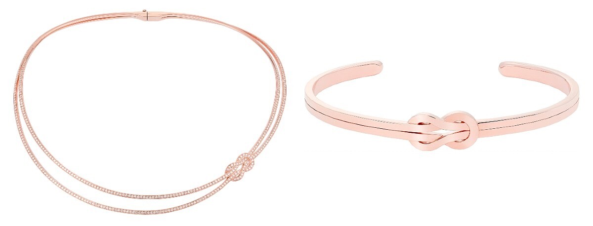 (左)Chance Infinie High Jewellery 18K玫瑰金鑽石項鍊、(右)Chance Infinie 玫瑰金手鐲