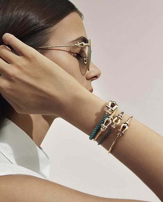 而Force 10系列,來自於一份愛的印記。有一天Fred Samuel長子將編織的纜繩固定在鉤環兩端,制作成一條手鏈獻給母親作爲生日禮物,Fred Samuel覺得這個想法有趣極了!於是重新設計了水手結的雙扭線結構,並增加黃金鏈扣,以及於手鏈周邊增加了鏈條元素,1966年 Force 10 系列第一件作品就此誕生。Force 10此名來自於測量海上風速的蒲福風級(Beaufort Scale),刻度範圍為0到12。FORCE 10對應船隻無法出海的風暴天氣,象徵著帆船面對強風時的高抵抗力,也凝聚了家人對於海洋的熱愛以及奮鬥精神。隨著時序漸進,此品牌經典代表系列不斷以各種不同材質搭配,並且以各種顏色的編織鏈結與黃金鍊,打造出摩登而絢爛的多樣化面貌。