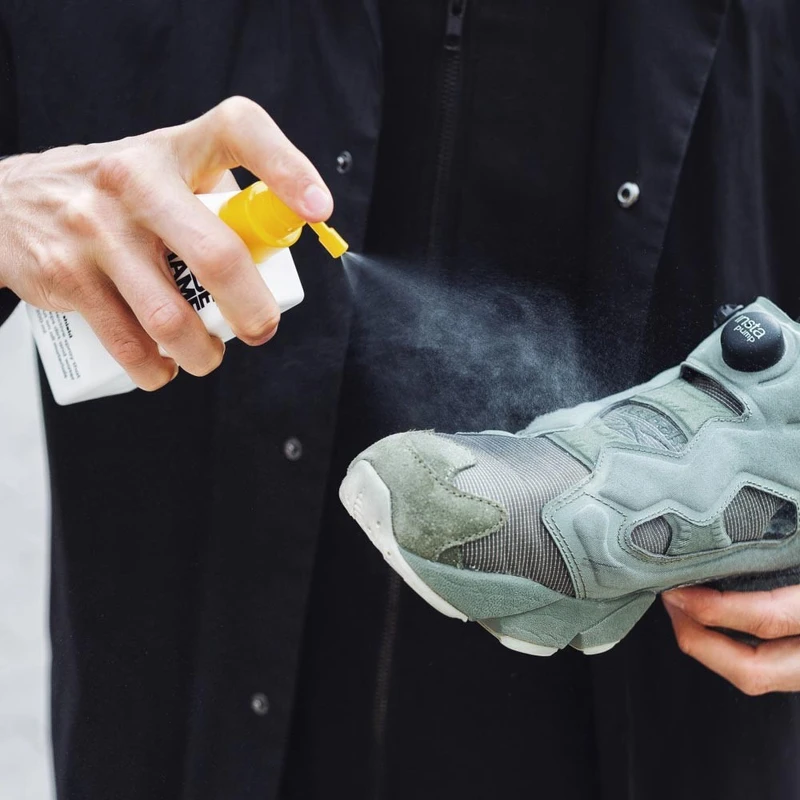 實在討厭球鞋淋濕的話,不如在一開始出門前,就先幫球鞋噴上防水噴霧,就像是穿上一件隱形雨衣,碰到下雨天球鞋也不會輕易淋濕。