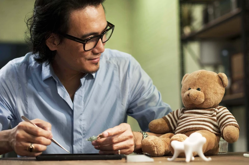 從《陪伴玉熊》系列中可以看到,設計師林曉同賦予陪伴小熊豐富的生命力,栩栩如生的動作、多變姿態,其中除了設計師的巧思以外,還需結合精湛的立體玉雕工藝。立體玉雕經由品牌自有珠寶工坊的工藝師,憑藉多年累積的豐富經驗、技術與手感,悉心選取最合適的玉料後,在玉石的取材上需要比作品原尺寸放大2-3倍的玉石為材,才得以擷取玉石最細緻溫潤、色澤通透的部分,避開石紋及裂痕,呈現完美的作品姿態。接著,以手工雕刻展現技術與藝術感的極致,為彰顯玉石最大程度的藝術價值,精準力道與細緻的角度、以及最後的拋光環節等缺一不可,達到完美結合原創設計與工藝的境界。