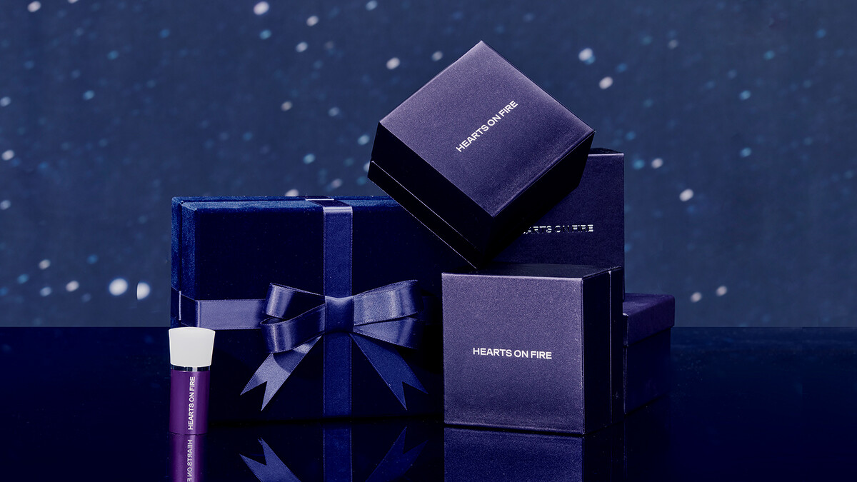 作為2021歲末滿載祝福的禮物,「Hearts On Fire Illa 限量系列」特別選用同樣限量登場的星光午夜禮盒包裝!隨盒更附上精美鑽石鑑賞儀,讓妳看著眼前的美鑽閃亮火光,就像隨時欣賞專屬自己的閃爍星空,幸福感受滿溢心底。