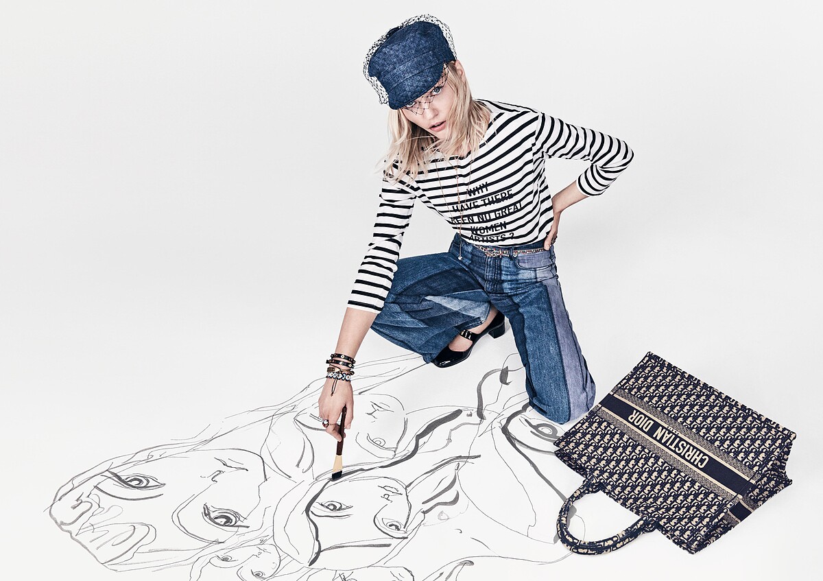 女裝創意總監Maria Grazia Chiuri從1967 年Marc Bohan設計的Dior Oblique帆布獲得靈感,打造出全以手工刺繡而成的Book Tote,光是刺繡過程就得耗時15到17小時,斜體Dior字母需經過3種不同顏色互相交疊,經過縝密的檢查,刺繡帆布會送至義大利佛羅倫斯的皮革工坊進行裁剪,加入長度經過巧妙計算的前後提把,並於包身內側縫製上壓印了金色字體的「Christian Dior Paris, made in Italy」皮革標,每一只Book Tote需花費超過32小時才能完工,自推出以來一直是品牌熱賣手袋之一。
