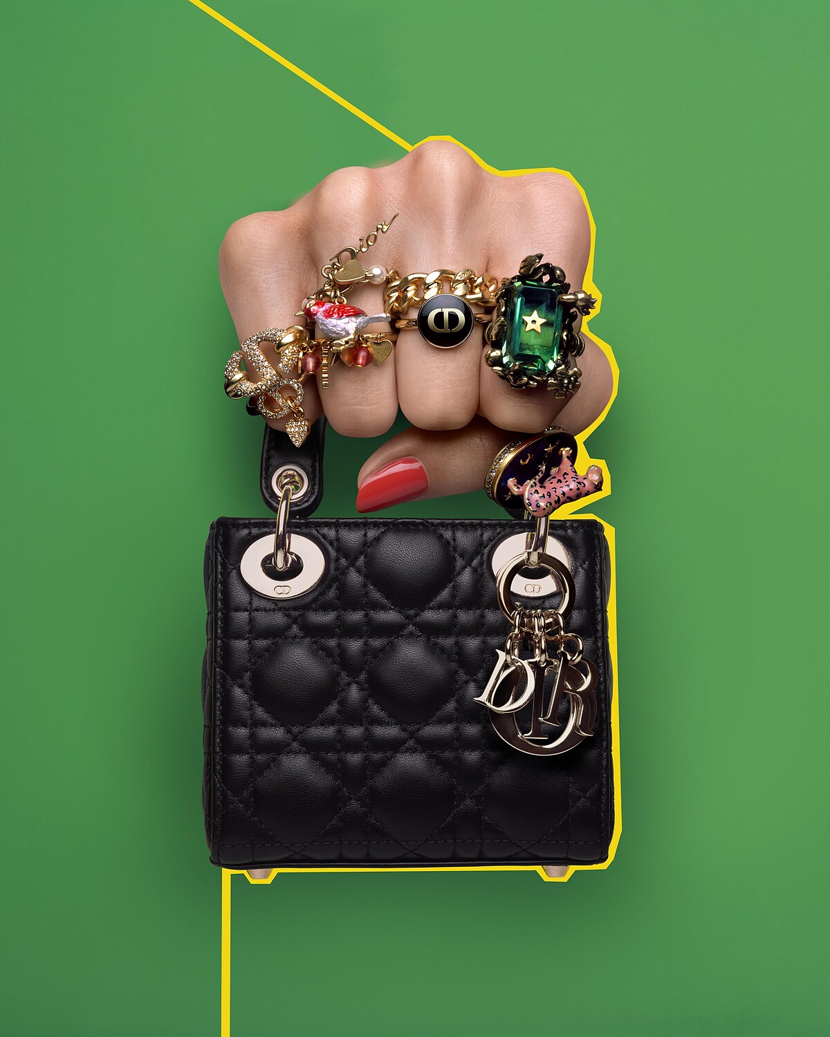為了迎接英國黛安娜王妃遠道而來,法國總統夫人席哈克夫於1995年找了迪奧先生為其量身打造,設計出籐格紋和橢圓形拉鍊的手提包,除了有好拿取的手提把設計,甚至考量到黛安娜王妃社交時的便利性,特別加入細長的肩背帶,在當時深得王妃的喜愛,後來包款以Lady Dior命名,每一季以不同材質與配色重新演繹,至今仍穩佔品牌熱賣包款第一位。