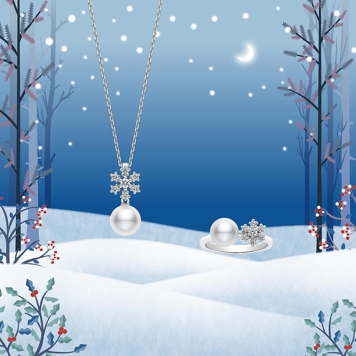 能完美將時尚、優雅、奢華融合集結於作品的MIKIMOTO,精選以雪花造型與繁星造型為主的兩大系列珠寶,透過溫潤珍珠與閃爍光彩的美鑽,以及卓越不凡美學品味,將浪漫雪夜元素融入珠寶設計中,完美呼應歲末溫馨美好的節慶氛圍。