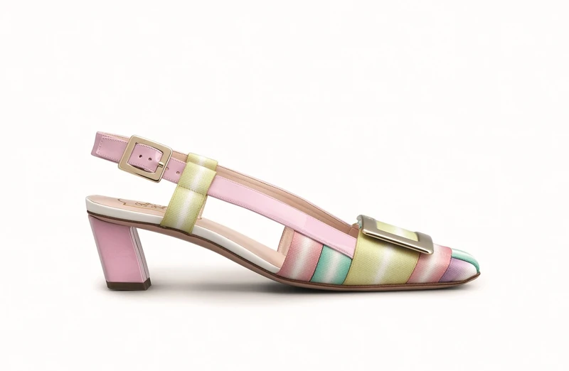 1967年演員嘉芙蓮丹露在電影《青樓紅杏》中穿著方釦鞋一戰成名,從此,方釦自動與Roger Vivier連上等號,方釦具備中性直邊和柔美圓角設計,不僅美化鞋履,更有修飾雙腳曲線的效果,Belle Vivier系列是品牌最經典的選擇,搭載低粗鞋跟設計,可以確保行走時的舒適度與儀態。