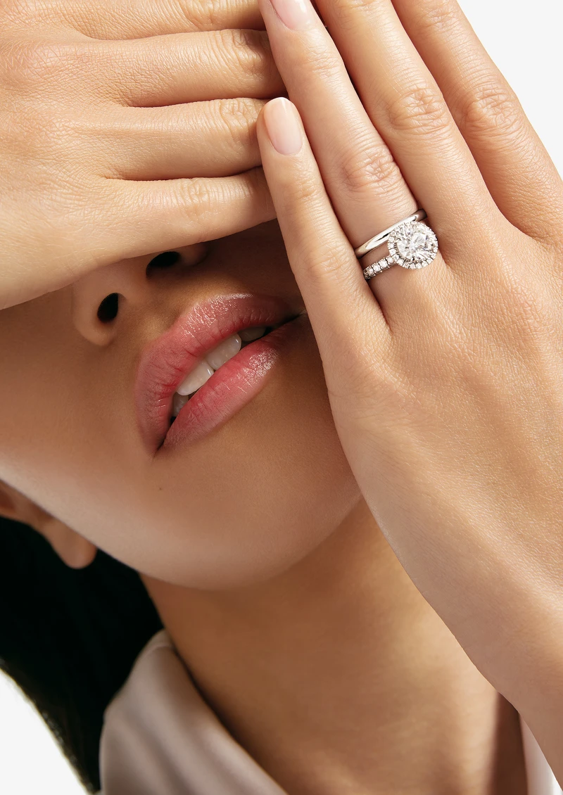 Cartier Destinée系列訂婚鑽戒最適合混搭或疊戴,不妨嘗試將訂婚鑽戒搭配卡地亞結婚對戒,無論戒環寬窄,採用的是鉑金、18K玫瑰金、18K黃金或18K白金,甚或鋪鑲了鑽石,皆彰顯卓越的風格品味與優雅氣息