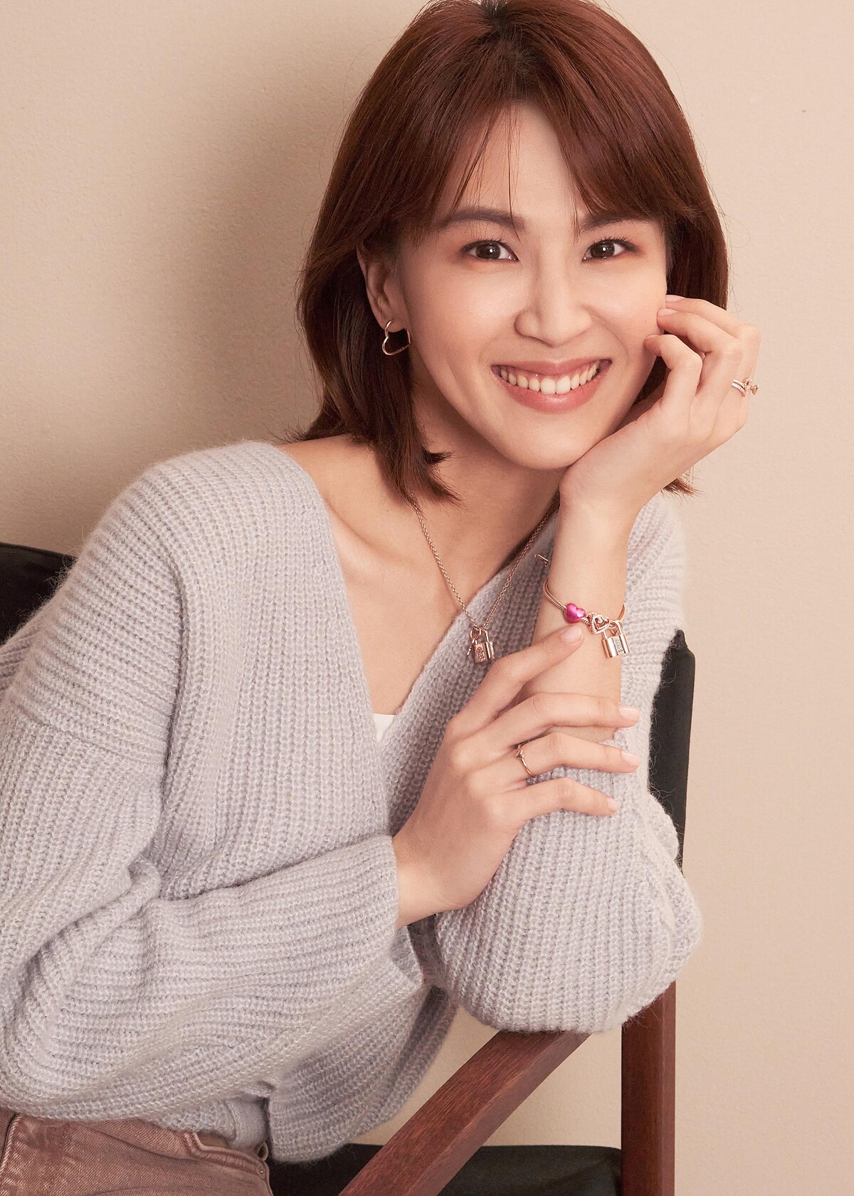 佩戴著Pandora的掛鎖與鑰匙首飾,她有感而發地說:「以前看到掛鎖的鏈飾,都會反問愛情真的鎖得住嗎?但隨著年紀漸長,才發現自己以前對愛情的想法比較不成熟,現在會了解其實日常生活所累積的各種信任感、各種相處的經驗才是我更看重的。而配戴這樣有意義的首飾,也成為一種很好的提醒。」