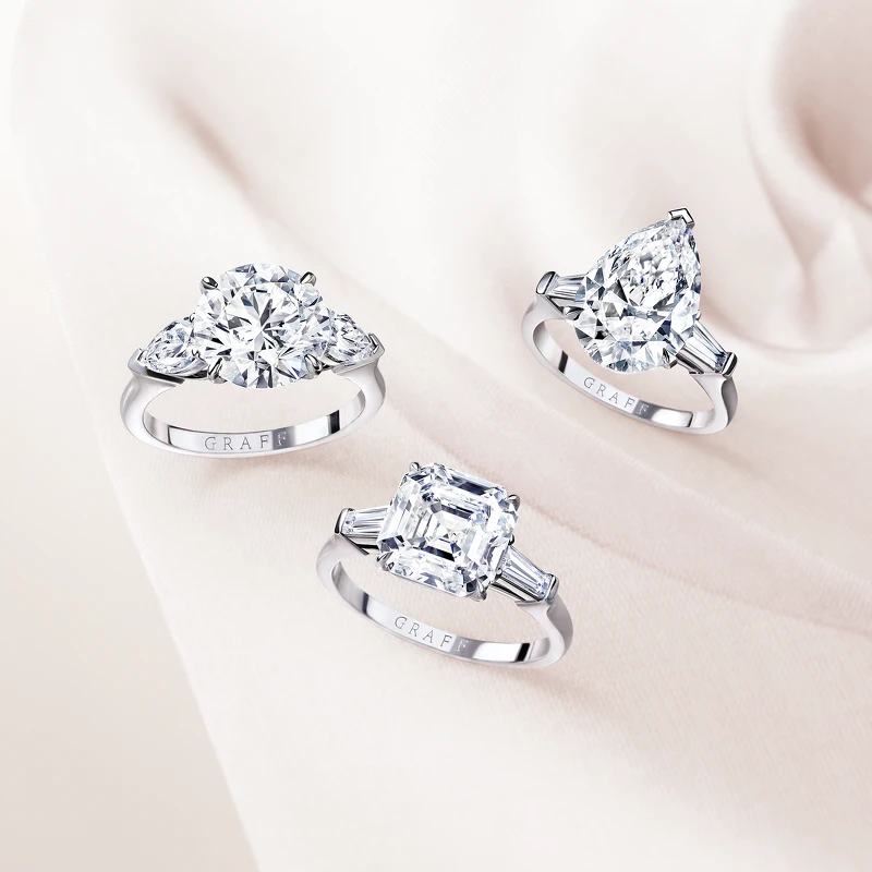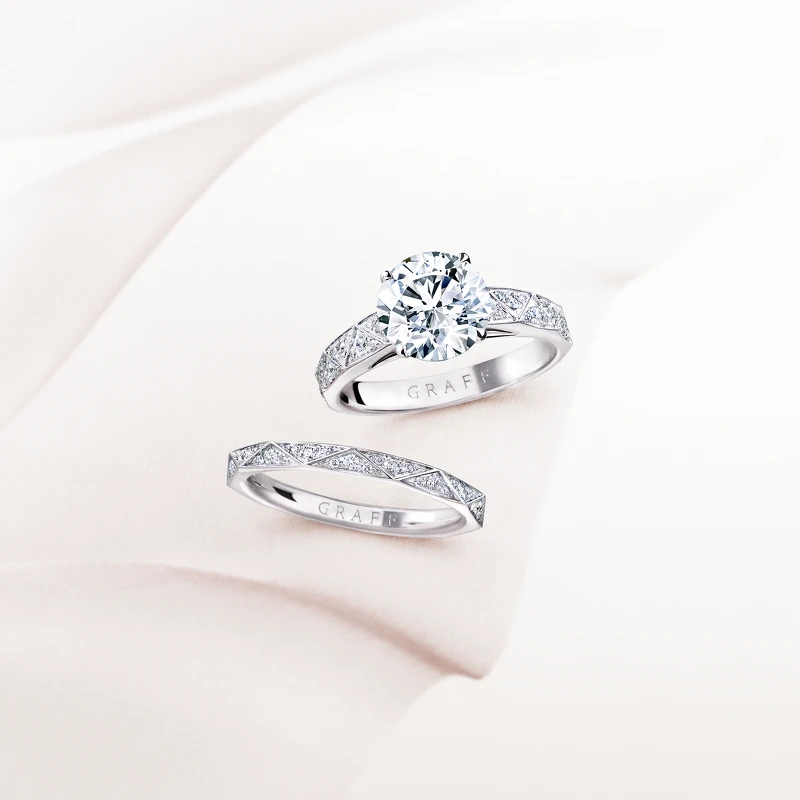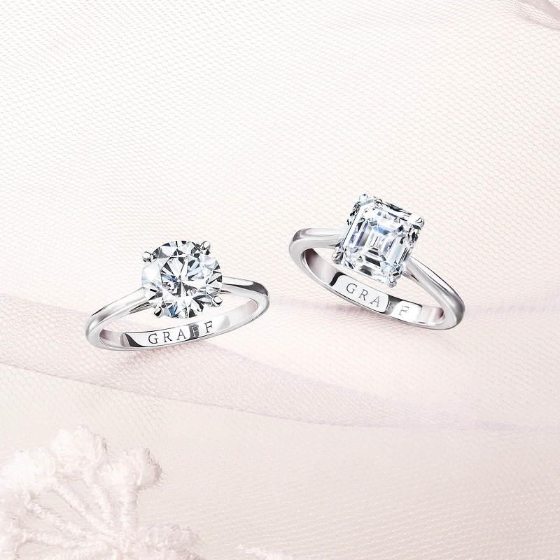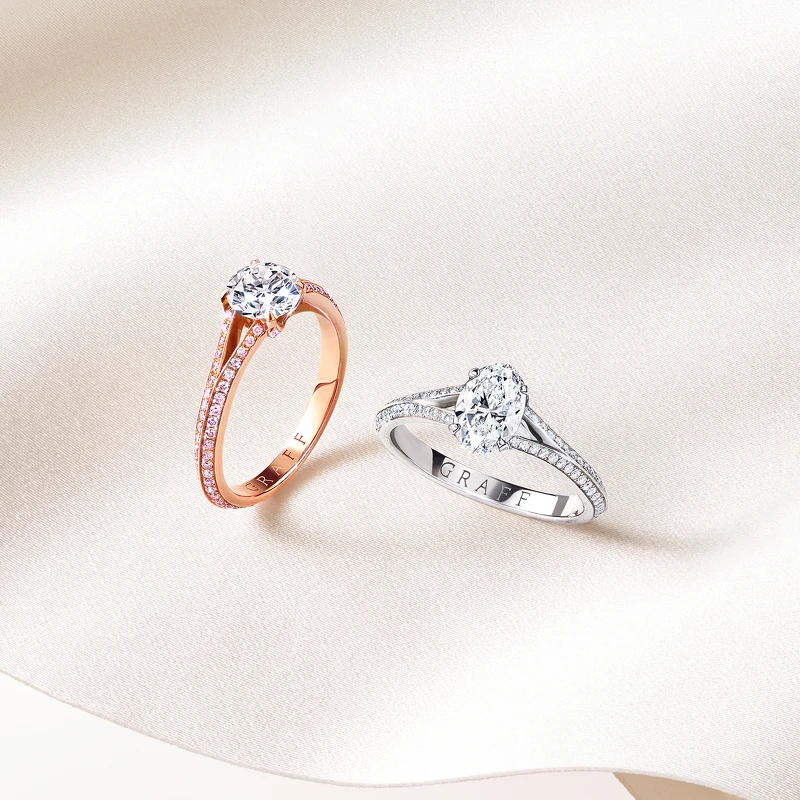 GRAFF鑽戒不僅可印證動人愛情,同時也是值得世代相傳的珍寶,透過其歌頌歷史名鑽的Promise、Flame、Icon、Constellation、Paragon和Legacy鑲嵌,以及創辦人受非凡美鑽魅力所啟發的Laurence Graff Signature鑲嵌,每一枚訂婚戒指都以美鑽為主角,飾以匠心獨具的細緻鑲嵌設計,以及經過多年精心鑽研的工匠巧手打造,才能襯托出鑽石獨一無二的閃爍迷人美態,就如同每對戀人愛侶各自擁有不同的浪漫故事般,唯一相同的就是無可比擬的璀璨動人樣貌。