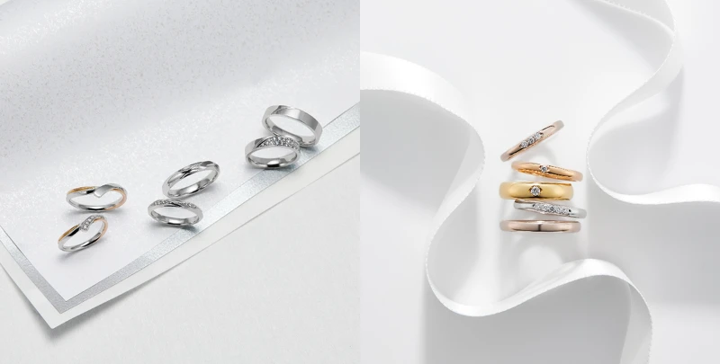 以日本詩歌發想的初空婚戒系列,結合精湛日本工藝技巧,展現詩意精緻的婚戒造型,名為霓Niji的婚戒更以彩虹為發想,透過飛舞絢麗彩帶線條將兩人相繫來詮釋浪漫,雙金材質的時雨Shigure婚戒則展現無論晴或雨都共度的承諾,髮絲工藝象徵人生中偶然的風雨;Origin Belief婚戒系列則以零作為起點,象徵愛侶從相守之日的從零開始到永遠的幸福寓意,透過特殊打磨與鑲嵌工藝,不僅低調細緻,配戴起來更是十分舒適。