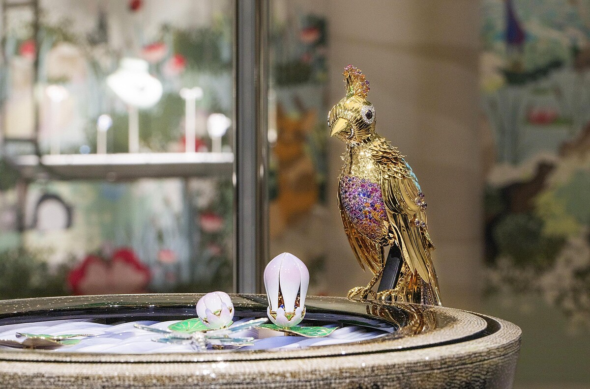 這件全新非凡珍寶,光在Van Cleef & Arpels梵克雅寶工坊就耗時超過4,300小時,傾盡各界頂尖巨匠所打造的雀鳥、蜻蜓、荷花、水塘…等珠寶裝置細節,總工序共花費超過25,200小時,可說是一件百川匯流的當代頂級工藝的協作旅程!