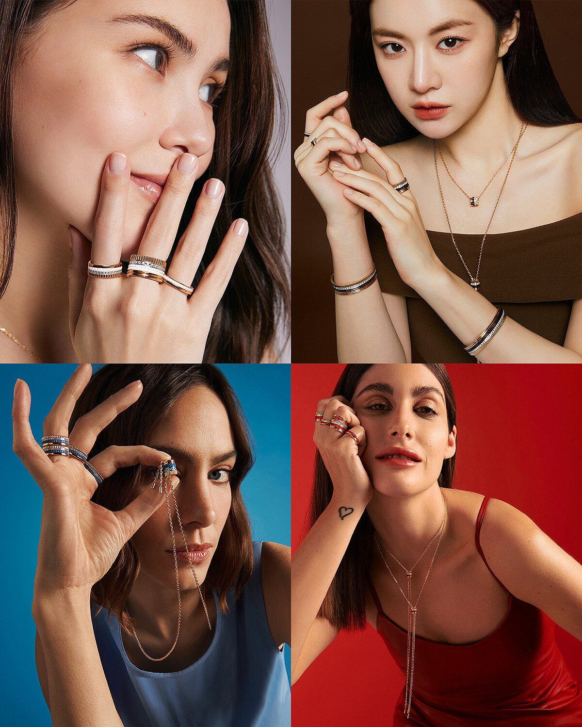Boucheron寶詩龍運用白、藍、紅、棕等很具春天意象的色彩為Quatre系列換上春裝,更顯輕盈、俏麗的氣息也讓穿搭有了更多的可能性和驚喜,而這正是Quatre系列最迷人之處,像是呼應品牌精神般,自由奔放的創造力讓收藏珠寶成了一種樂趣,而這些矜貴的作品也從保險箱走向日常,成為穿搭的一部分,甚至是造型亮點。為了迎接美麗的季節,Boucheron寶詩龍邀請昆凌(Hannah Quinlivan)、高允貞(Youn-Jung Go)、Alexa Chung、Nour Arida一起玩珠寶,四人拍攝的春夏形象廣告皆流露出滿盈的喜悅與期待,明快的珠寶色彩搭配或隨興或優雅的造型,展現出她們鮮明的人格特質與光彩之餘,也傳達春日時光的輕快與美好。