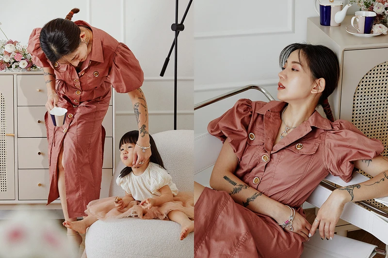 身為花藝設計師的艾琳,忙碌工作之餘也會抽出時間專門與女兒進行高質量的相處,提到成為媽媽之後要兼顧工作上的忙碌,以及孩子漸漸成長的感受時,她則想起了某一天嚴重睡過頭了,明明應該五點起床去工作,但醒來時已經是五點半的狀況,愧疚之餘也讓她想起小時候天天準時叫醒自己去上學的媽媽,艾琳說:「無論忙到多麼累或多麼晚,媽媽都始終如一,而現在我有了小蘵,也成為 她的鬧鐘,成為幫她打理好一切的角色,從少女到媽媽的變化,更能體會到這些成長、愛與奉獻。」辛勞卻因為有滿滿的愛而甘之如飴,看著日益成長的寶寶,在回家會跟她說:「媽媽好辛苦」、一起工作會親親艾琳,看著攝影師點腦螢幕說:「媽媽好漂亮」的點滴,是一種只有媽媽才懂得的甜蜜滿足感。