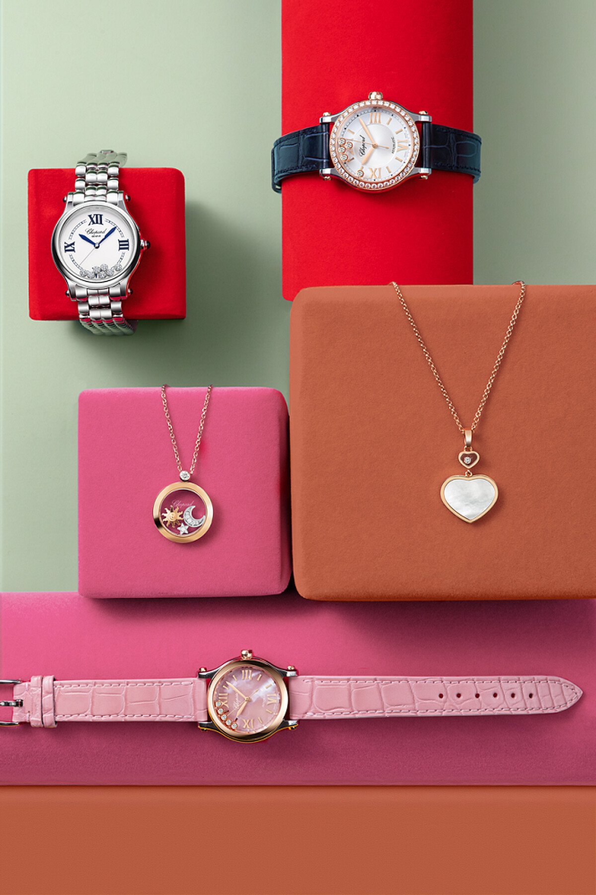 歷經多年時尚風格變遷依舊深受品味女性鍾愛的經典之作,透過現任蕭邦聯合總裁暨創意總監卡羅琳不斷讓吸引著活躍現代女性的滑動鑽石,以不同的生動面貌,吸引更多跨年齡女性們愛戀不捨的目光,像是復刻經典的Happy Sport The First腕錶,融入愛心造型的Happy Hearts珠寶與腕錶,珍珠母貝綻放瑰麗虹彩的Happy Sport Manufacture腕錶,熱情熾熱如火的Happy Sports系列腕錶,以及靈感來自一圈圈漣漪的Happy Spirit系列,或是深深吸引高爾夫迷的Happy Diamonds Golf系列項鍊…每一件作品,都那麼與眾不同,細膩優雅。