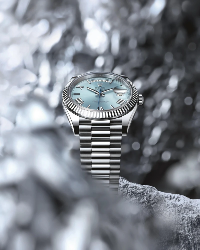今年登場的「Day-Date 40」,更以珍貴的950鉑金鑄造,讓這只絕對足以成為傳家寶的腕錶,珍藏價值更上層樓。