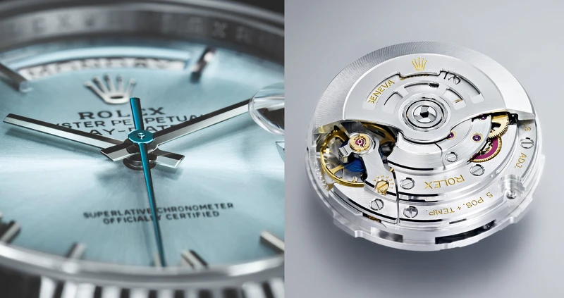 勞力士傲視腕錶界多年的非凡技藝,在「Day-Date 40」上同樣獲得完美體現!搭載3255型自動上鏈機芯、Chronergy擒縱系統、藍色Parachrom游絲,以及高性能Paraflex緩震裝置…等勞力士出類拔萃的製錶專利,擁有美麗冰藍色錶面的「Day-Date 40」,內在的強大無庸置疑。對活躍且獨鍾經典的愛錶人士來說,保證防水深達100米的勞力士蠔式錶殼,更是這款腕錶無可取代的實用特色之一。