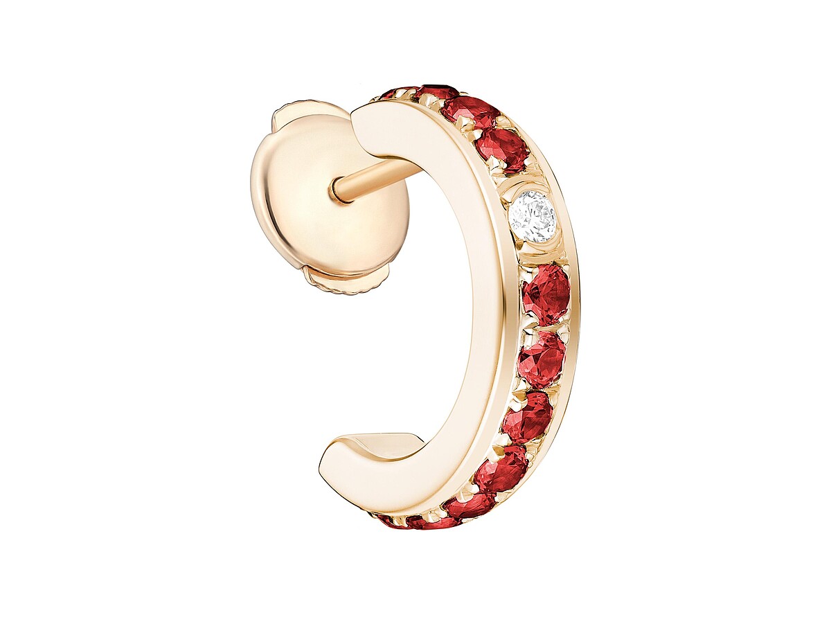 PIAGET Possession系列18K玫瑰金紅寶石鑽石單圈耳環,建議售價NT$62,000