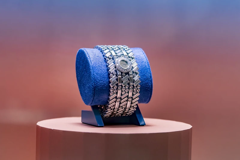 Faubourg系列女錶最早在2014年推出,尺寸迷你精巧的正圓形錶殼,搭配由圓點和斜線形狀組成的鍊節。而這款頂級珠寶鍊錶的細節,以珠鑲、包鑲與隱密式工藝,鑲嵌鑲嵌重5.15克拉146顆明亮式切割鑽石、重21.26克拉108顆長方形切割鑽石(錶鏈)、重0.558克拉19顆明亮式切割鑽石(錶殼),整個製程至少一年起跳。錶款搭載石英機芯,2022年參考價格NT$18,969,700。