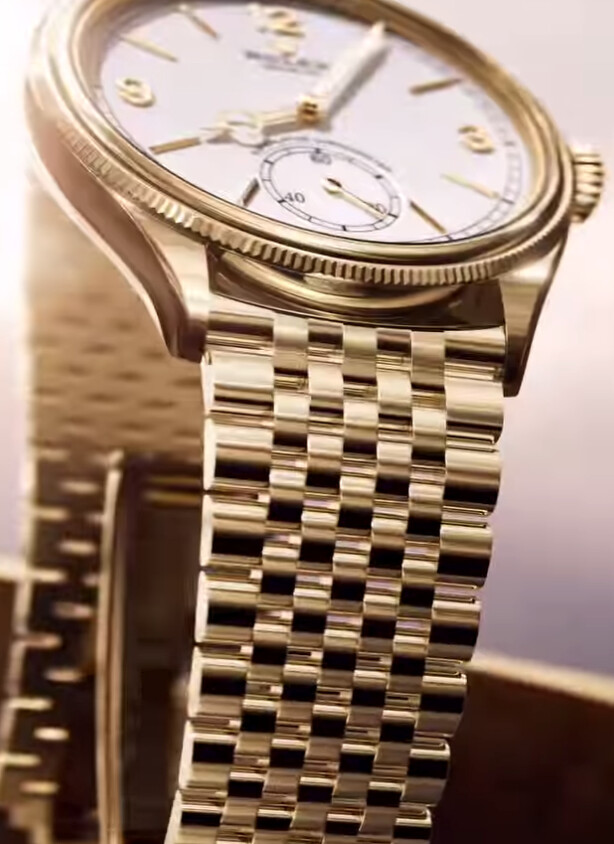 2025年Watches & Wonders日內瓦錶展期間,勞力士曝光的多款新錶中,一款配備新式鏈帶的Perpetual 1908腕錶誠以18K黃金,搭配39毫米錶殼、醇白色錶面及七臻型(Settimo)錶帶的外在特別引人注目!全新的錶帶七臻型(Settimo)以七格實心鏈節打造,鏈結精巧而略呈弧形的鏈節組成,各個表面均經過磨光處理,實際上手體驗,絲滑、順暢、纖薄又服貼,佩戴起來十分舒適。勞力士家族創新幾何結構的鍊帶首發,搭載於以品牌創立年份1908型腕錶之上更顯得別具意義,而錶鏈確實也是專為此系列打造。錶帶以特殊專利裝置固定於中層錶殼,並搭配隱蔽式摺疊皇冠帶扣。
