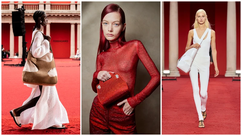 此外,Maximilian Davis也在色彩上著墨,選用源自於美國視覺藝術家 Rachel Harrison 的《Sunset》系列作品,將日落時分褪色的意象運用在手染針織單品及配件上,營造出空靈性感、層次分明的視覺感受。而本季率先提出的「FERRAGAMO Red」,則是重新定義了品牌經典色,貫穿服裝與配件系列,勢必也將成為熱門色彩。