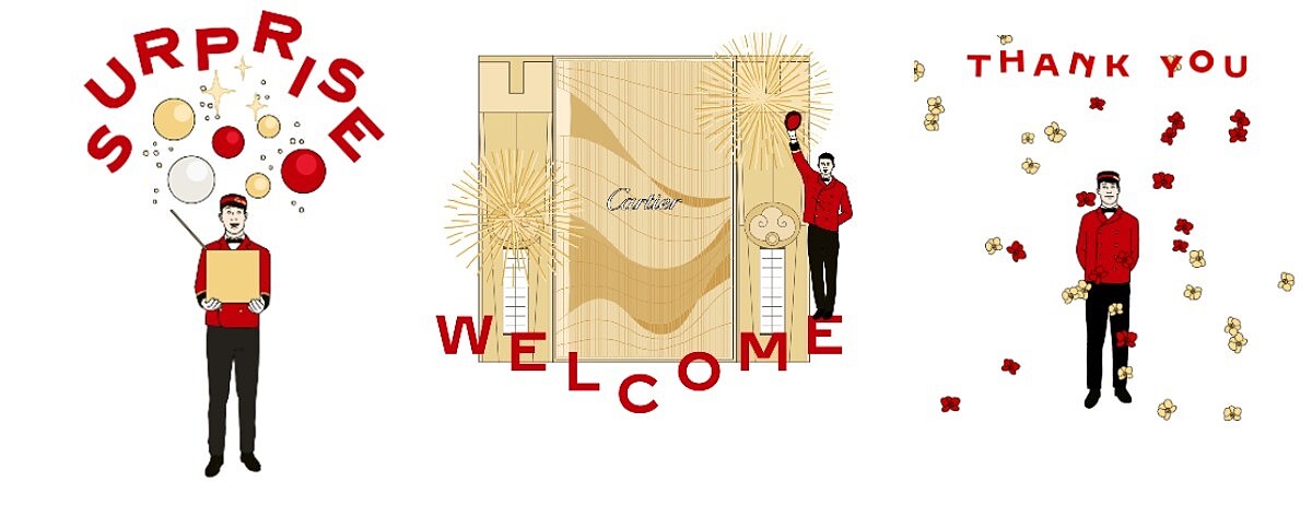 另外,為了歡慶台北101旗艦店嶄新開幕,Cartier卡地亞台灣LINE官方帳號更首次推出期間限定動態主題貼圖,以經典的門僮圖騰作為設計主軸,讓大家可以自由選擇「HELLO」、「THANK YOU」、「SURPRISE」向好友們打招呼,也能透過「LOVE」、「MERRY CHRISTMAS」、「HAPPY NEW YEAR」等文字向家人傳達祝福以及佳節氣氛,讓日常手機貼圖再添充滿時尚品味的新歡~