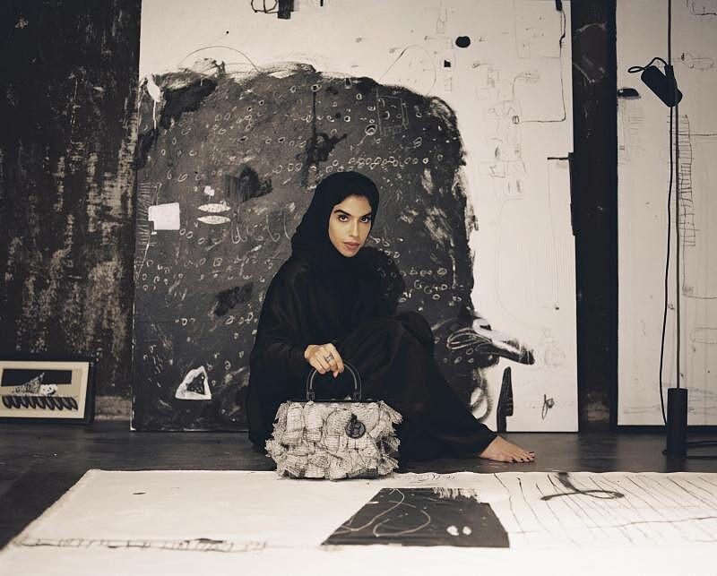 在創作 Lady Dior 方面,Bouthayna Al Muftah 利用字形藝術與概念書籍的創作,利用雪紡紗展現卡達詩意的一面,同時串接起阿拉伯世界的書籍作者們。這些精心設計的手工刺繡織物令人想起蝕刻在手稿上,充滿歷史與回憶的扉頁。Bouthayna Al Muftah 的設計並非以語言呈現,但她利用懸垂的絲線展現藝術和時尚深植人心的特質,娓娓道出懷舊風情與卡達文化的身分認同。