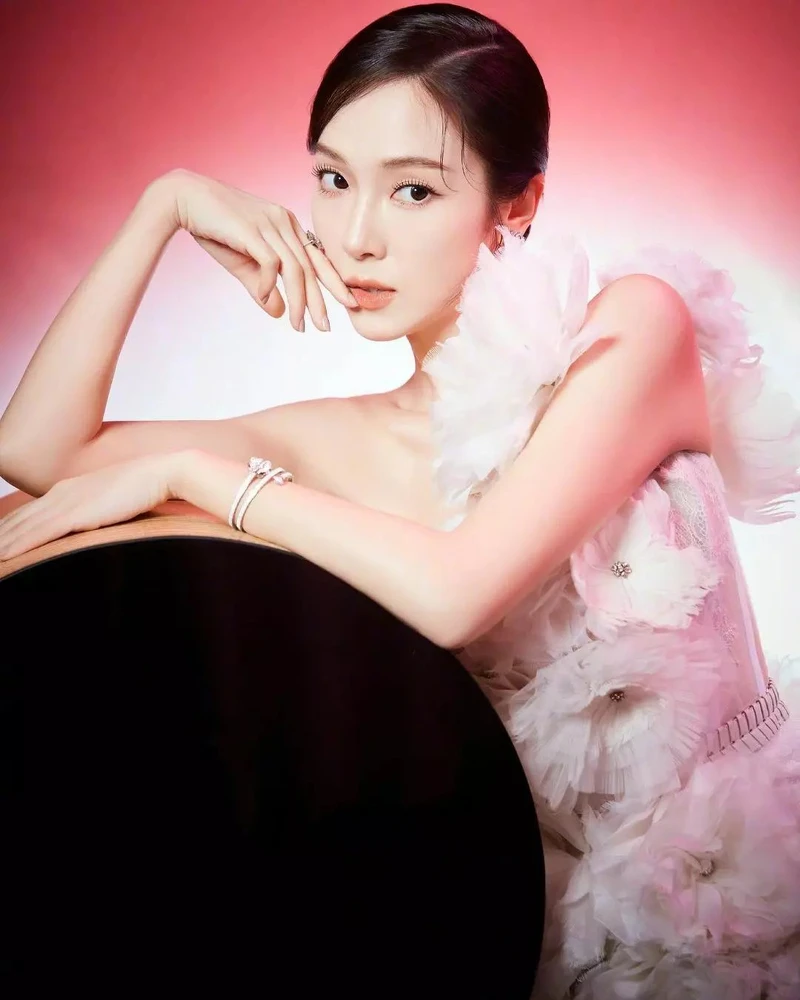 另一套平口珠飾流蘇粉色小禮服,定價在53萬台幣上下,飄逸的群襬展現出Jisoo滿滿仙氣的形象。