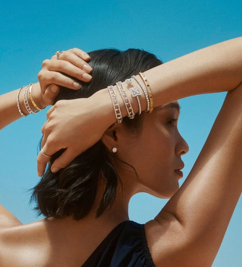 Enchanted Lotus系列除了時髦混搭魅力滿點的入門款繽紛琺瑯新品外,以18K白金搭配白鑽的經典設計也有新作問世,將更多現代感元素與充滿新穎玩味巧思的設計融入,打造出更具自我態度的風格美鑽珠寶,包含:兩端各飾有鑽石蓮葉與蓮花圖案的不對稱式指間戒、前衛大膽充滿玩味的開放式手鐲、經典蓮花圖案自鑽石蓮葉垂懸而下,讓存在感倍增的優雅垂墜式耳環……都能讓新世代女性以風格鮮明、雋永大方的美鑽珠寶,搭配出專屬自我的獨特自信主張。