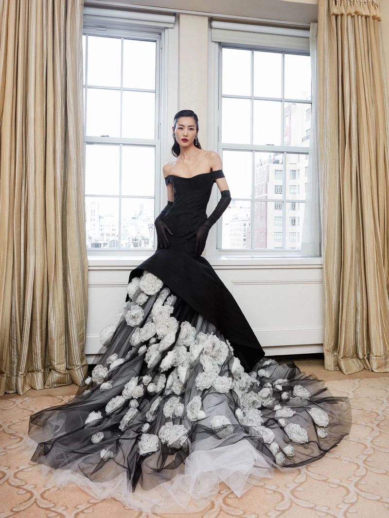 有著「人間香奈兒」封號的她,選了一套很適合她的短洋裝。其實全身幾乎都是復刻當年秀上模特兒的穿搭,只是在頭上多了一朵白色山茶花。經典不敗的蝴蝶結與山茶花,黑白雙色,在她的重新詮釋之下,讓新一輩的人們更了解老佛爺的設計,也是美事一樁。