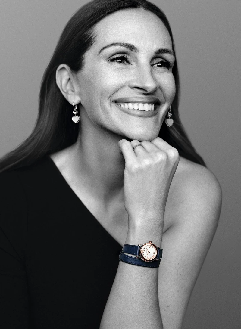 茱莉亞.羅勃茲以迷人全新形象,完美詮釋蕭邦經典Happy Sport系列腕錶快樂自由精神,期望女性盡情擁抱生命中的美好時刻!