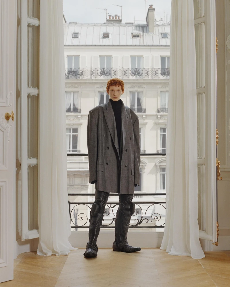 春季24系列由兩個篇章構成:Garde-Robe (Balenciaga精緻必備衣櫥系列) 和新一季成衣系列,聚焦日常生活的實用性設計,重點考慮了人們生活中的行為習慣,例如從人行道上撿起硬幣或踏著滑板飛馳而過。