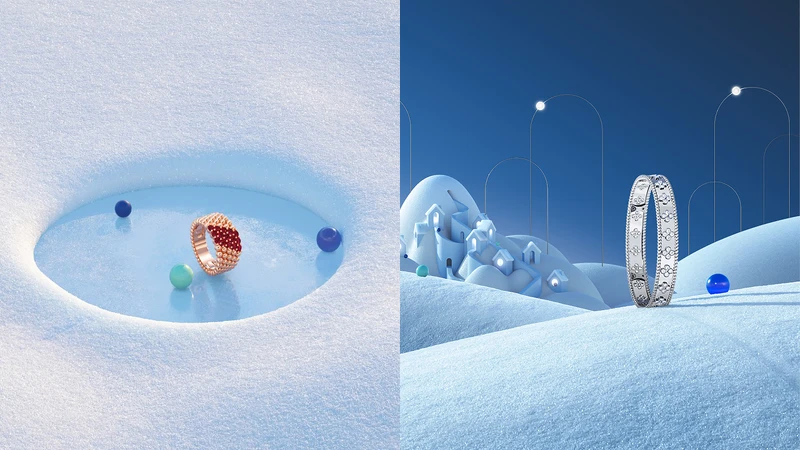Van Cleef & Arpel Perlée系列再度攜手法國藝術家Arthur Hoffner,打造金質圓珠瑰麗迷人的專屬冬日氛圍