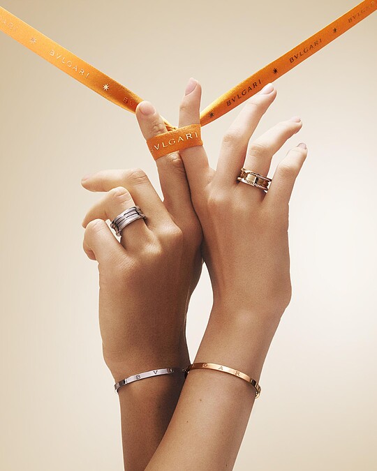 對於寶格麗來說,愛的語言自然且簡單,純粹卻有著深遠的影響,並以各種形式傳遞其重要意義:一條橙色的絲帶,讓人聯想起金色的羅馬日落,在寶格麗標誌性作品上跳動著歡樂的舞蹈,傳達著愛的訊息;藉由雙手,表達一種超越言語的連結和親密感。