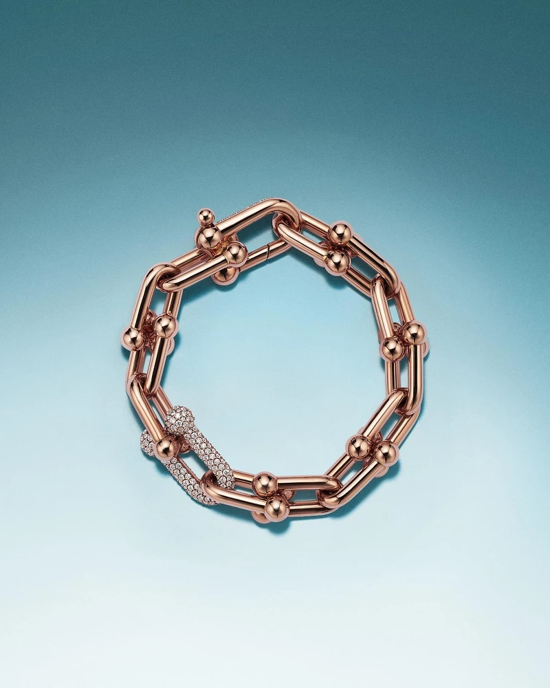 Tiffany HardWear系列的前衛造型,取材自古典珍藏庫中一只1962年的手環設計,饒富雕塑感的立體金屬構件,讓人不禁聯想到紐約的冷冽工業風,亦被解讀為愛的變革之力。如同品牌發祥地一樣,此系列極具視覺張力的表現手法,體現了持久堅韌及自由的力量,以男女皆可輕鬆消化的酷調風格,延續品牌的無畏之心。